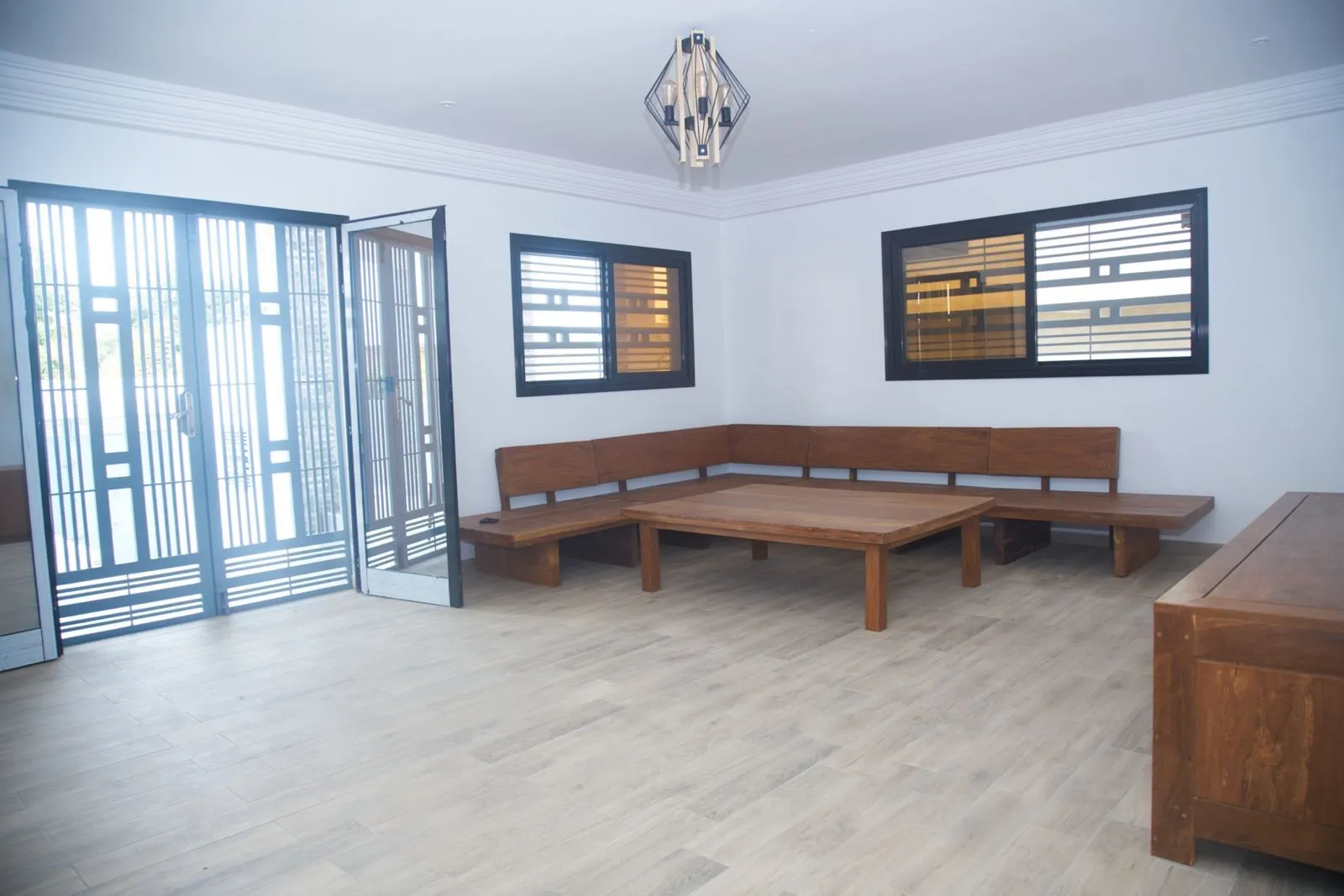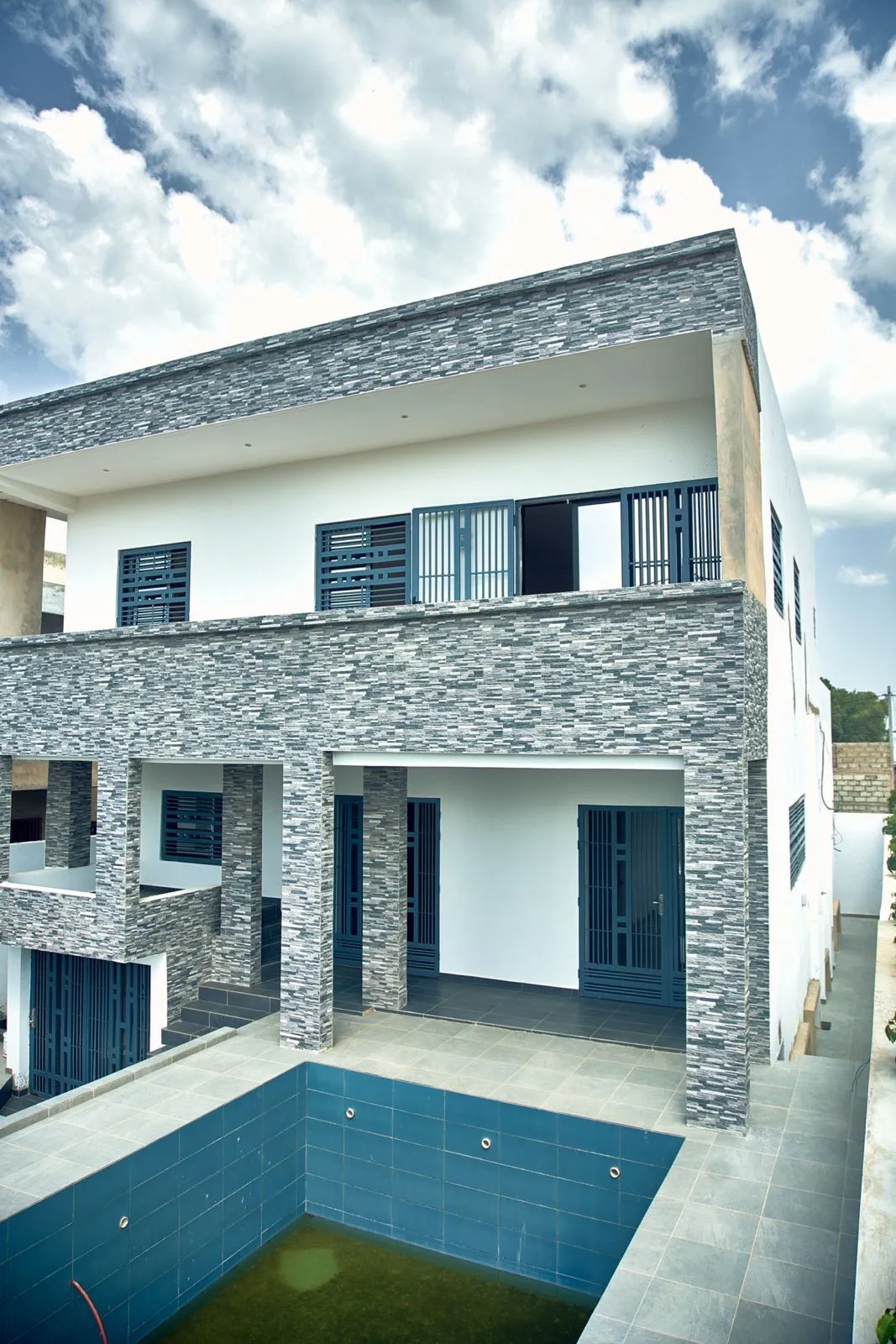 • Le dernier espace familial dispose d’un balcon offrant une vue sur la piscine à l’entrée de la maison.
